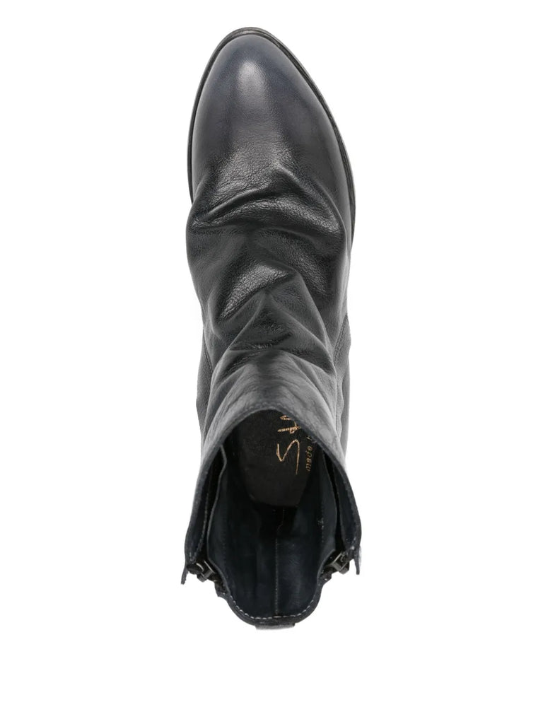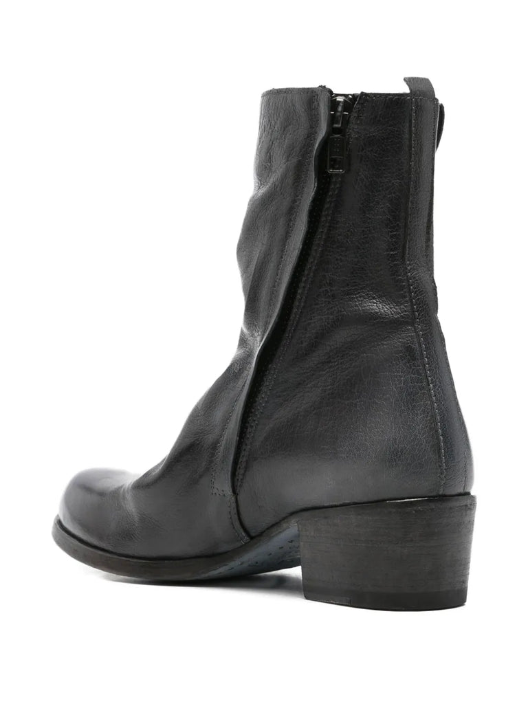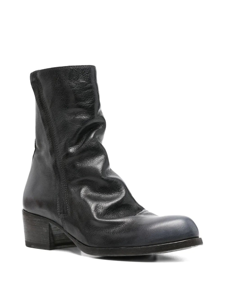 Bota de piel de búfalo, arrugada en su parte delantera con puntera y talón en color degradado, doble cremallera lateral y tacón cuadrado de 4.5 cm. (Talla grande)