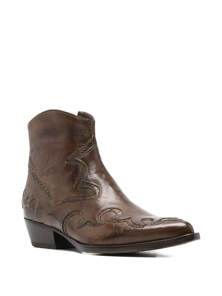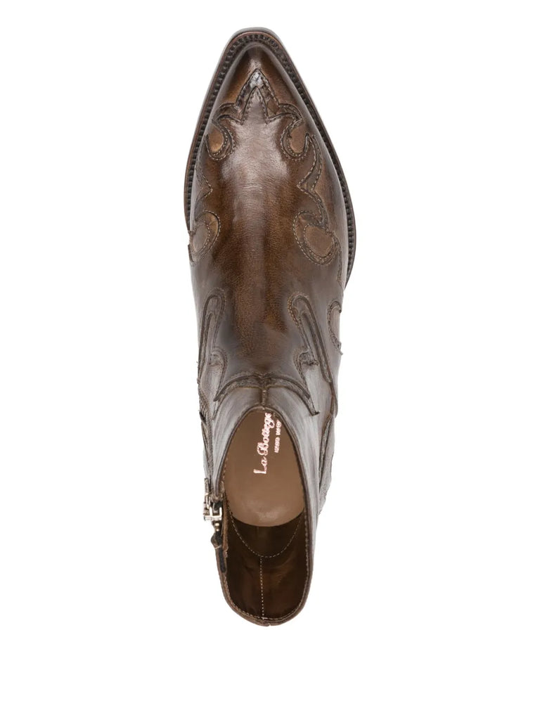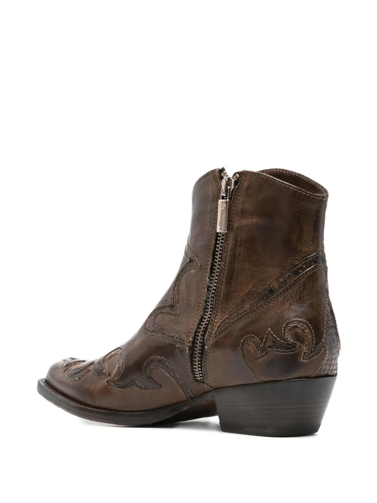 Bota de piel combinada con piel de pitón, cremallera lateral y tacón de 5 cm.