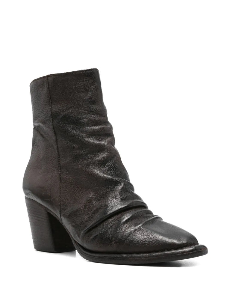 Bota de piel de búfalo efecto arrugado, super ligera y elástica en color marrón oscuro, cremallera lateral y tacón de 7 cm.
