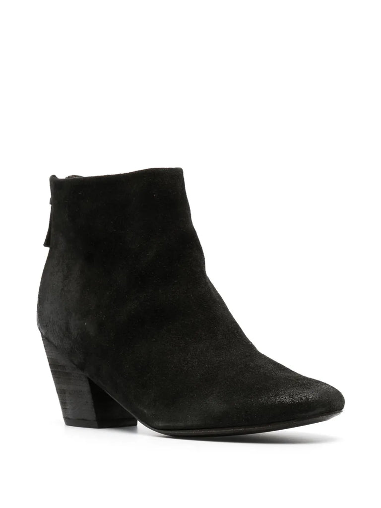 Bota de piel de ciervo con cremallera trasera y tacón de 6 cm.