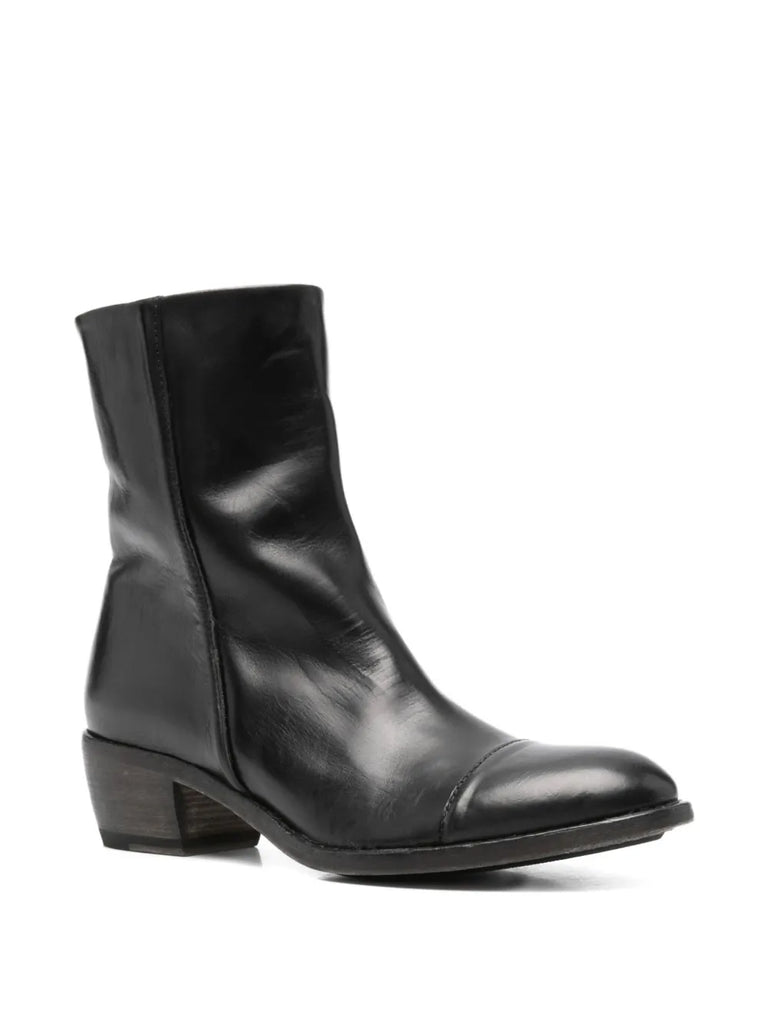Bota de piel con cremallera lateral y tacón cuadrado de 4 cm. Talla 1/2 talla grande.